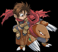 During the destruction of Tylon's base of operations, Yugo rescued from the surrounding rubble a boy, previously Tylon's guinea-pig. The boy had no memories and nobody to take care of him, so Yugo took it upon himself to adopt him as his brother and named him Kenji. Recovering his humanity in the care of Yugo, Kenji carries on an aide to his brother in his activities in the non-government organization (NGO) known as the World of Co-Existence (W.O.C.).