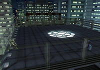 Like most of the Bloody Roar 4, there is no visible barriers this time the arena is limited by glass tiles (showing the building interior) and danger warnings. In one of the sides of the arena, there is a pit.