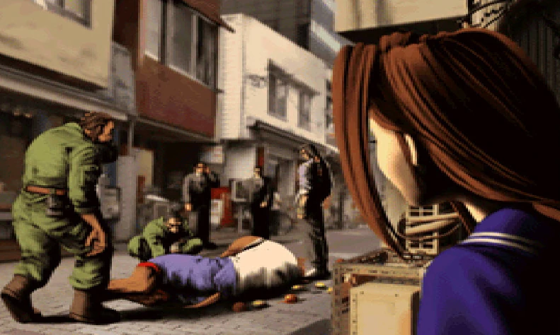 Playing Uriko's story in Bloody Roar 2, Mitsuko is shown on the ground being surrounded by Shenlong and other men from the ZLF in front of her daughter. She's finally liberated by Uriko.